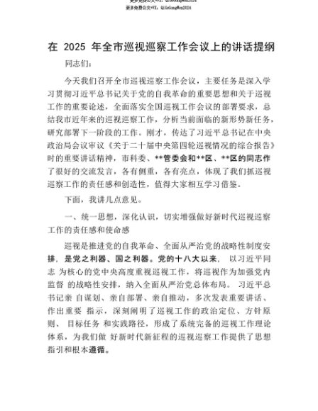 【七哥公文】2025年:【七哥公文】在2025年全市巡视巡察工作会议上的讲话提纲+更多免费公文+VX:QiGeGongWen2024+更多免费公文+VX:QiGeGongWen2024