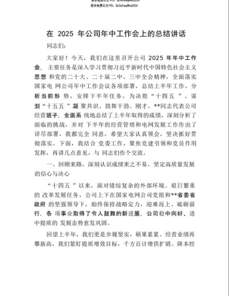 【七哥公文】2025年:【七哥公文】在2025年公司年中工作会上的总结讲话+更多免费公文+VX:QiGeGongWen2024+更多免费公文+VX:QiGeGongWen2024