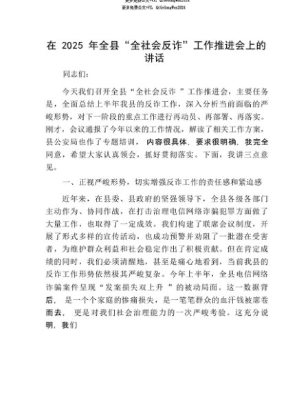 【七哥公文】2025年:【七哥公文】在2025年全县“全社会反诈”工作推进会上的讲话+更多免费公文+VX:QiGeGongWen2024+更多免费公文+VX:QiGeGongWen2024
