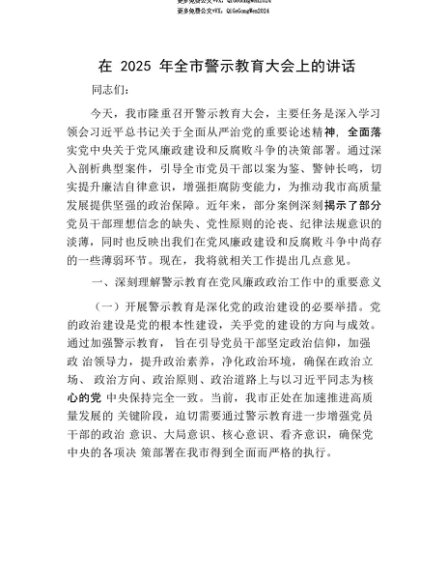【七哥公文】2025年:【七哥公文】在2025年全市警示教育大会上的讲话+更多免费公文+VX:QiGeGongWen2024+更多免费公文+VX:QiGeGongWen2024