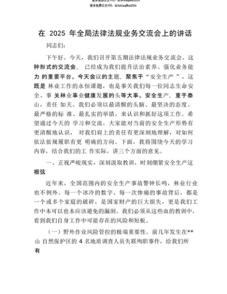 【七哥公文】2025年:【七哥公文】在2025年全局法律法规业务交流会上的讲话+更多免费公文+VX:QiGeGongWen2024+更多免费公文+VX:QiGeGongWen2024