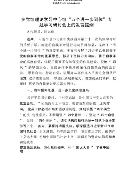 【七哥公文】2025年:【七哥公文】在X组理论学习中心组“五个进一步到位”专题学习研讨会上的发言提纲+更多免费公文+VX:QiGeGongWen2024+更多免费公文+VX:QiGeGongWen2024