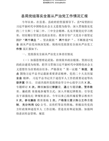 【七哥公文】2025年:【七哥公文】县局X组落实全面从严治X工作情况汇报+更多免费公文+VX:QiGeGongWen2024+更多免费公文+VX:QiGeGongWen2024