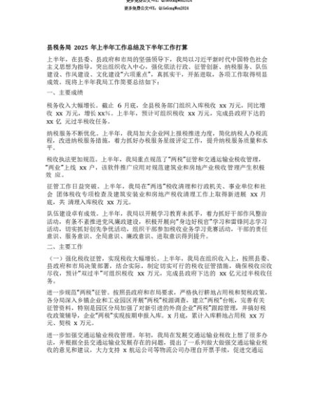 【七哥公文】2025年:【七哥公文】县税务局2025年上半年工作总结及下半年工作打算+更多免费公文+VX:QiGeGongWen2024+更多免费公文+VX:QiGeGongWen2024