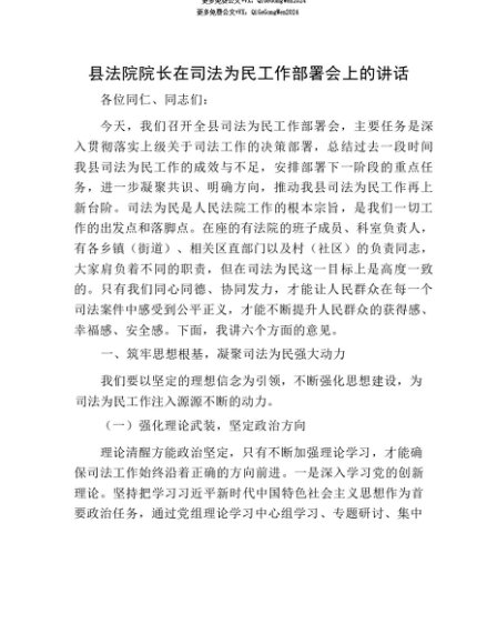 【七哥公文】2025年:【七哥公文】县法院院长在司法为民工作部署会上的讲话+更多免费公文+VX:QiGeGongWen2024+更多免费公文+VX:QiGeGongWen2024