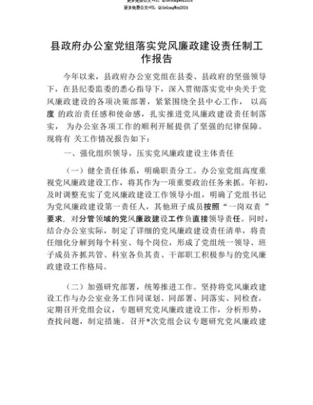 【七哥公文】2025年:【七哥公文】县政府办公室X组落实X风廉政建设责任制工作报告+更多免费公文+VX:QiGeGongWen2024+更多免费公文+VX:QiGeGongWen2024