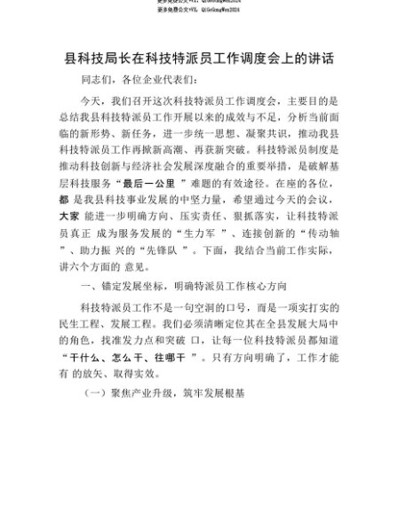 【七哥公文】2025年:【七哥公文】县科技局长在科技特派员工作调度会上的讲话+更多免费公文+VX:QiGeGongWen2024+更多免费公文+VX:QiGeGongWen2024
