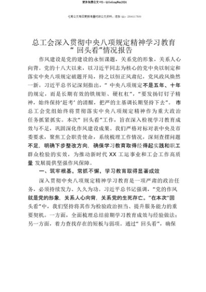 【七哥公文】2025年:【七哥公文】总工会深入贯彻中央八项规定精神学习教育“回头看”情况报告+更多免费公文+VX:QiGeGongWen2024+更多免费公文+VX:QiGeGongWen2024