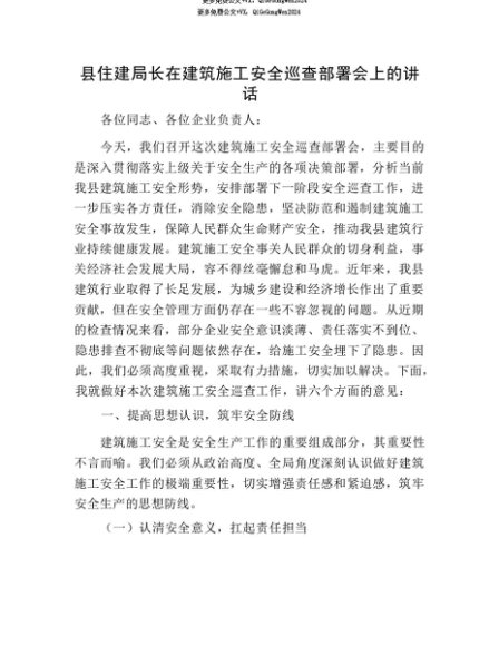 【七哥公文】2025年:【七哥公文】县住建局长在建筑施工安全巡查部署会上的讲话+更多免费公文+VX:QiGeGongWen2024+更多免费公文+VX:QiGeGongWen2024