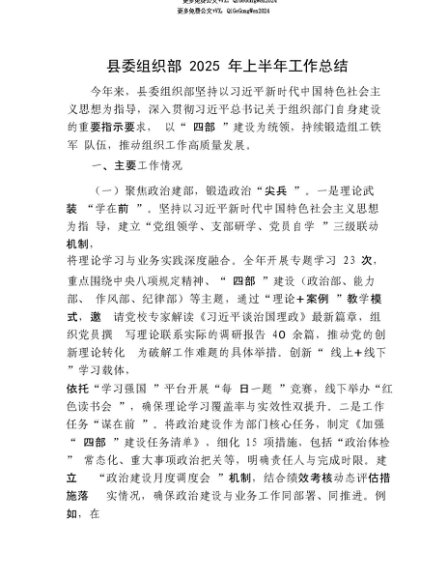 【七哥公文】2025年:【七哥公文】县委组织部2025年上半年工作总结+更多免费公文+VX:QiGeGongWen2024+更多免费公文+VX:QiGeGongWen2024