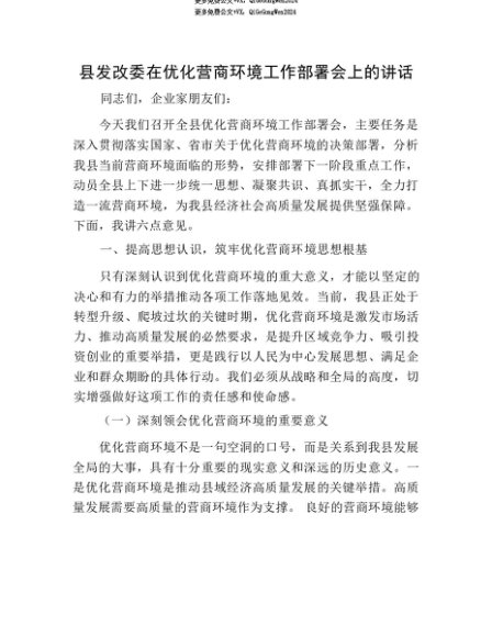 【七哥公文】2025年:【七哥公文】县发改委在优化营商环境工作部署会上的讲话+更多免费公文+VX:QiGeGongWen2024+更多免费公文+VX:QiGeGongWen2024