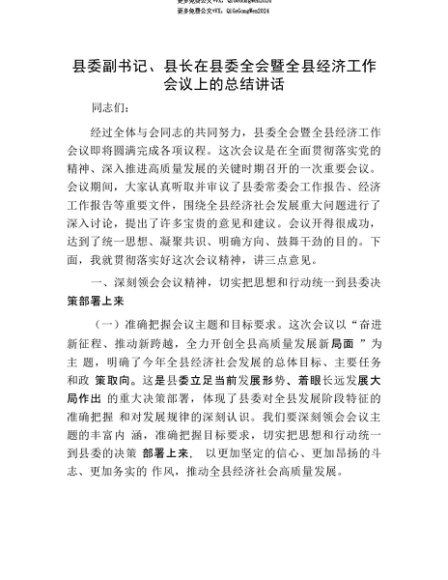【七哥公文】2025年:【七哥公文】县委副书记、县长在县委全会暨全县经济工作会议上的总结讲话+更多免费公文+VX:QiGeGongWen2024+更多免费公文+VX:QiGeGongWen2024