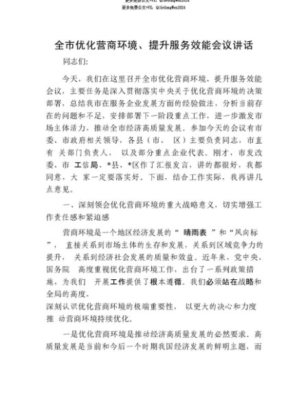 【七哥公文】2025年:【七哥公文】全市优化营商环境、提升服务效能会议讲话+更多免费公文+VX:QiGeGongWen2024+更多免费公文+VX:QiGeGongWen2024