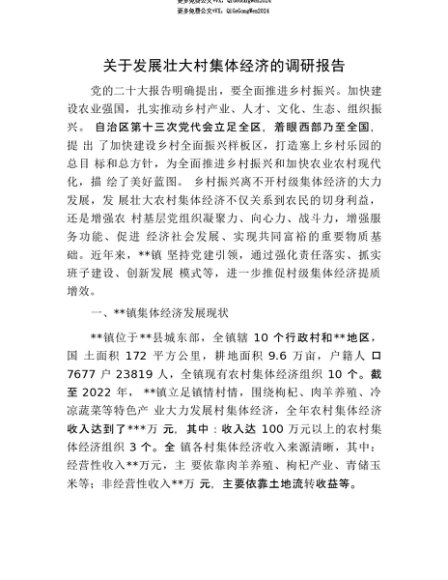 【七哥公文】2025年:【七哥公文】关于发展壮大村集体经济的调研报告+更多免费公文+VX:QiGeGongWen2024+更多免费公文+VX:QiGeGongWen2024