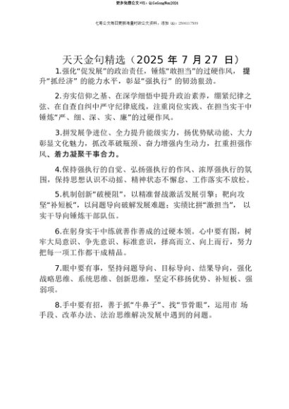 【七哥公文】2025年:【七哥公文】天天金句精选(2025年7月27日)+更多免费公文+VX:QiGeGongWen2024+更多免费公文+VX:QiGeGongWen2024