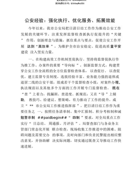 【七哥公文】2025年:【七哥公文】公安经验:强化执行、优化服务、拓展效能+更多免费公文+VX:QiGeGongWen2024+更多免费公文+VX:QiGeGongWen2024