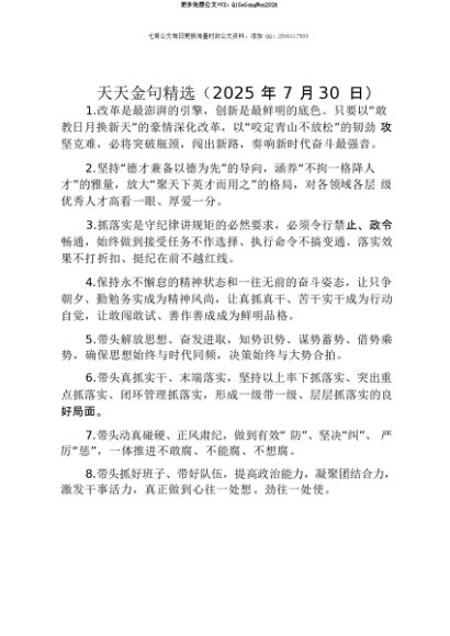 【七哥公文】2025年:【七哥公文】天天金句精选(2025年7月30日)+更多免费公文+VX:QiGeGongWen2024+更多免费公文+VX:QiGeGongWen2024