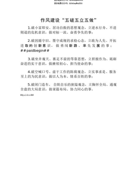 【七哥公文】2025年:【七哥公文】作风建设“五破五立五做”+更多免费公文+VX:QiGeGongWen2024+更多免费公文+VX:QiGeGongWen2024