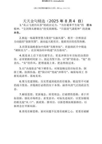 【七哥公文】2025年:【七哥公文】天天金句精选(2025年8月4日)+更多免费公文+VX:QiGeGongWen2024+更多免费公文+VX:QiGeGongWen2024
