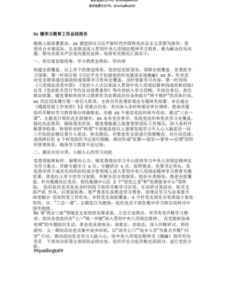 【七哥公文】2025年:【七哥公文】Xx镇学习教育工作总结报告+更多免费公文+VX:QiGeGongWen2024+更多免费公文+VX:QiGeGongWen2024