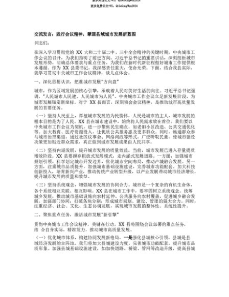 【七哥公文】2025年:【七哥公文】交流发言:践行会议精神,擘画县域城市发展新蓝图+更多免费公文+VX:QiGeGongWen2024+更多免费公文+VX:QiGeGongWen2024