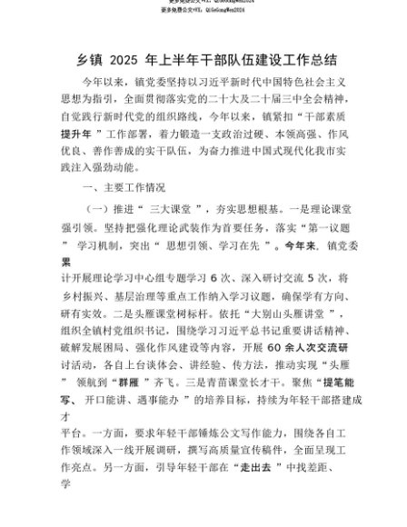 【七哥公文】2025年:【七哥公文】乡镇2025年上半年干部队伍建设工作总结+更多免费公文+VX:QiGeGongWen2024+更多免费公文+VX:QiGeGongWen2024