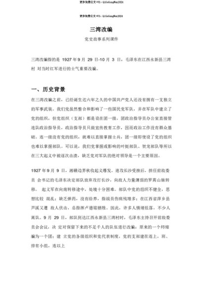 【七哥公文】2025年:【七哥公文】1927年三湾改编PPT党史红色故事系列课件(讲稿)+更多免费公文+VX:QiGeGongWen2024+更多免费公文+VX:QiGeGongWen2024