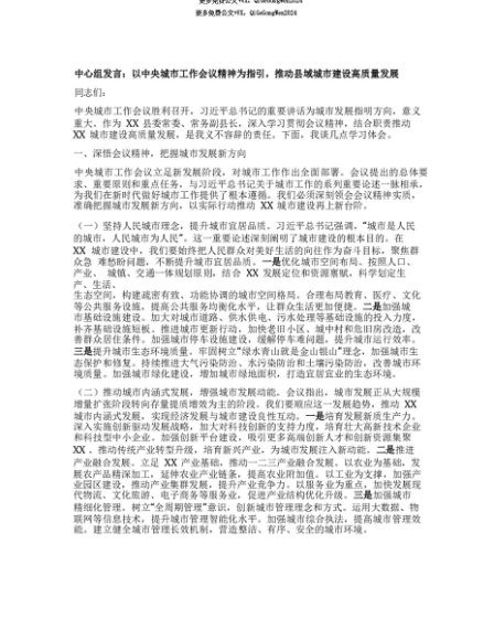 【七哥公文】2025年:【七哥公文】中心组发言:以中央城市工作会议精神为指引,推动县域城市建设高质量发展+更多免费公文+VX:QiGeGongWen2024+更多免费公文+VX:QiGeGongWen2024