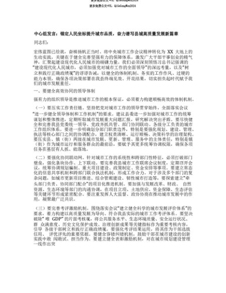 【七哥公文】2025年:【七哥公文】中心组发言:锚定人民坐标提升城市品质,奋力谱写县城高质量发展新篇章+更多免费公文+VX:QiGeGongWen2024+更多免费公文+VX:QiGeGongWen2024