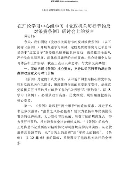 【七哥公文】2025年:【七哥公文】在理论学习中心组学习《党政机关厉行节约反对浪费条例》研讨会上的发言+更多免费公文+VX:QiGeGongWen2024+更多免费公文+VX:QiGeGongWen2024