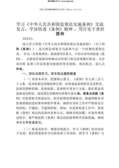 【七哥公文】2025年:【七哥公文】学习《中华人民共和国监察法实施条例》交流发言:学深悟透《条例》精神,笃行实干勇担使命+更多免费公文+VX:QiGeGongWen2024+更多免费公文+VX:QiGeGongWen2024