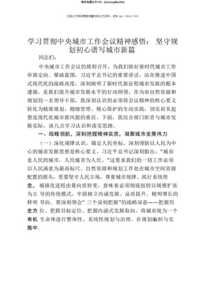 【七哥公文】2025年:【七哥公文】学习贯彻中央城市工作会议精神感悟:坚守规划初心 谱写城市新篇+更多免费公文+VX:QiGeGongWen2024+更多免费公文+VX:QiGeGongWen2024