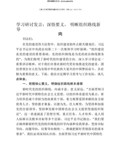【七哥公文】2025年:【七哥公文】学习研讨发言:深悟要义,明晰组织路线新导向+更多免费公文+VX:QiGeGongWen2024+更多免费公文+VX:QiGeGongWen2024