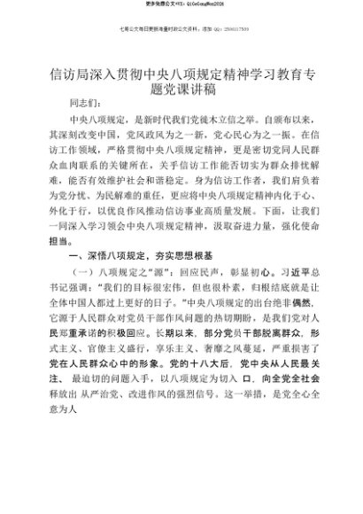 【七哥公文】2025年:【七哥公文】信访局深入贯彻中央八项规定精神学习教育专题党课讲稿+更多免费公文+VX:QiGeGongWen2024+更多免费公文+VX:QiGeGongWen2024