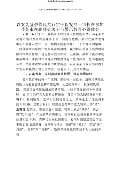 【七哥公文】2025年:【七哥公文】以案为鉴强作风笃行实干促发展—市长在参加某某市在职县处级干部警示教育心得体会+更多免费公文+VX:QiGeGongWen2024+更多免费公文+VX:QiGeGongWen2024
