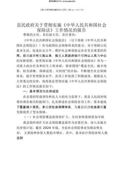【七哥公文】2025年:【七哥公文】县民政府关于贯彻实施《中华人民共和国社会保险法》工作情况的报告+更多免费公文+VX:QiGeGongWen2024+更多免费公文+VX:QiGeGongWen2024