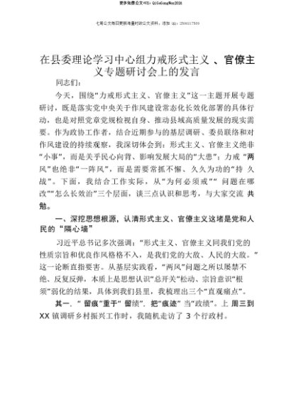 【七哥公文】2025年:【七哥公文】在县委理论学习中心组力戒形式主义、官僚主义专题研讨会上的发言+更多免费公文+VX:QiGeGongWen2024+更多免费公文+VX:QiGeGongWen2024