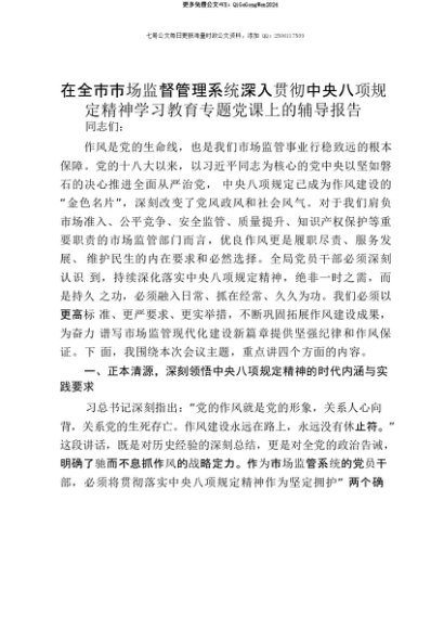 【七哥公文】2025年:【七哥公文】在全市市场监督管理系统深入贯彻中央八项规定精神学习教育专题党课上的辅导报告+更多免费公文+VX:QiGeGongWen2024+更多免费公文+VX:QiGeGongWen2024