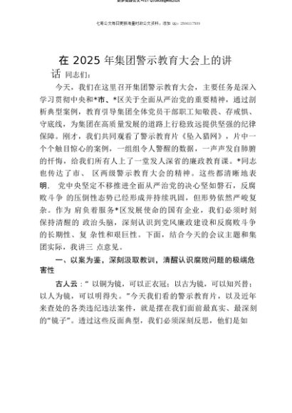 【七哥公文】2025年:【七哥公文】在2025年集团警示教育大会上的讲话+更多免费公文+VX:QiGeGongWen2024+更多免费公文+VX:QiGeGongWen2024