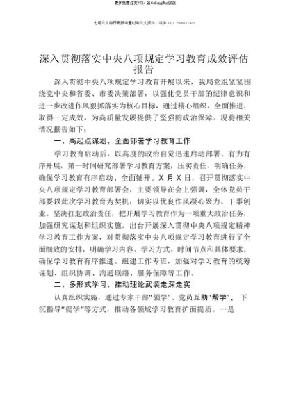 【七哥公文】2025年:【七哥公文】深入贯彻落实中央八项规定学习教育成效评估报告+更多免费公文+VX:QiGeGongWen2024+更多免费公文+VX:QiGeGongWen2024