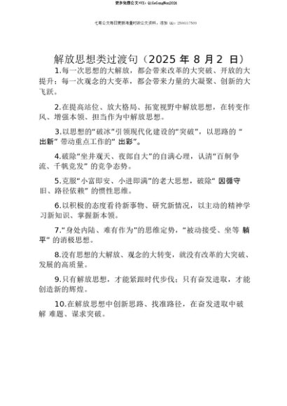 【七哥公文】2025年:【七哥公文】解放思想类过渡句(2025年8月2日)+更多免费公文+VX:QiGeGongWen2024+更多免费公文+VX:QiGeGongWen2024