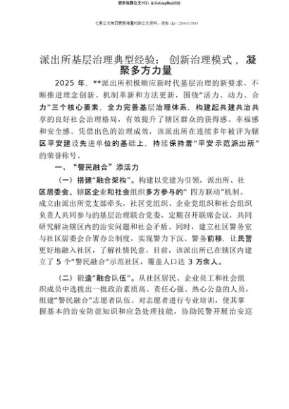 【七哥公文】2025年:【七哥公文】派出所基层治理典型经验:创新治理模式,凝聚多方力量+更多免费公文+VX:QiGeGongWen2024+更多免费公文+VX:QiGeGongWen2024