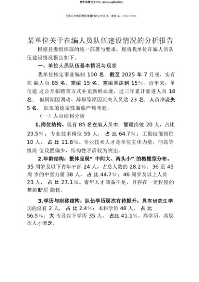 【七哥公文】2025年:【七哥公文】某单位关于在编人员队伍建设情况的分析报告+更多免费公文+VX:QiGeGongWen2024+更多免费公文+VX:QiGeGongWen2024