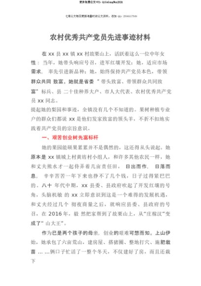 【七哥公文】2025年:【七哥公文】农村优秀共产党员先进事迹材料+更多免费公文+VX:QiGeGongWen2024+更多免费公文+VX:QiGeGongWen2024