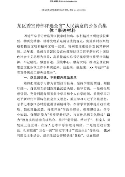 【七哥公文】2025年:【七哥公文】某区委宣传部评选全省“人民满意的公务员集体”事迹材料+更多免费公文+VX:QiGeGongWen2024+更多免费公文+VX:QiGeGongWen2024