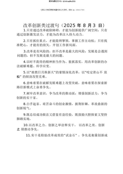 【七哥公文】2025年:【七哥公文】改革创新类过渡句(2025年8月3日)+更多免费公文+VX:QiGeGongWen2024+更多免费公文+VX:QiGeGongWen2024