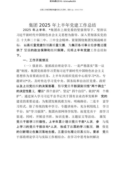 【七哥公文】2025年:【七哥公文】集团2025年上半年党建工作总结+更多免费公文+VX:QiGeGongWen2024+更多免费公文+VX:QiGeGongWen2024