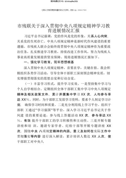 【七哥公文】2025年:【七哥公文】市残联关于深入贯彻中央八项规定精神学习教育进展情况汇报+更多免费公文+VX:QiGeGongWen2024+更多免费公文+VX:QiGeGongWen2024