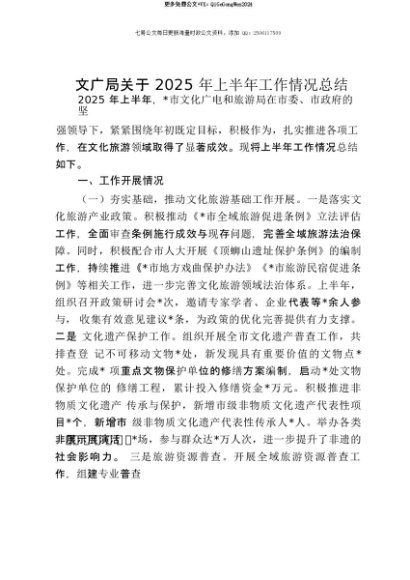【七哥公文】2025年:【七哥公文】文广局关于2025年上半年工作情况总结+更多免费公文+VX:QiGeGongWen2024+更多免费公文+VX:QiGeGongWen2024
