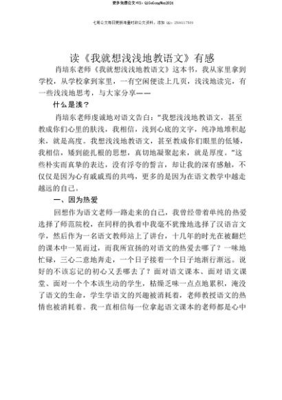 【七哥公文】2025年:【七哥公文】读《我就想浅浅地教语文》有感+更多免费公文+VX:QiGeGongWen2024+更多免费公文+VX:QiGeGongWen2024
